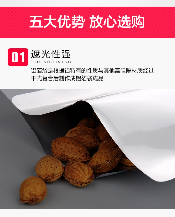 鋁箔袋一般都是複合包裝袋(dài),其應用十分廣泛,在生活中我們隨處可見鋁箔袋的身(shēn)影,它比較適用於大型精密機械設(shè)備、食品和化(huà)學原料的包裝。